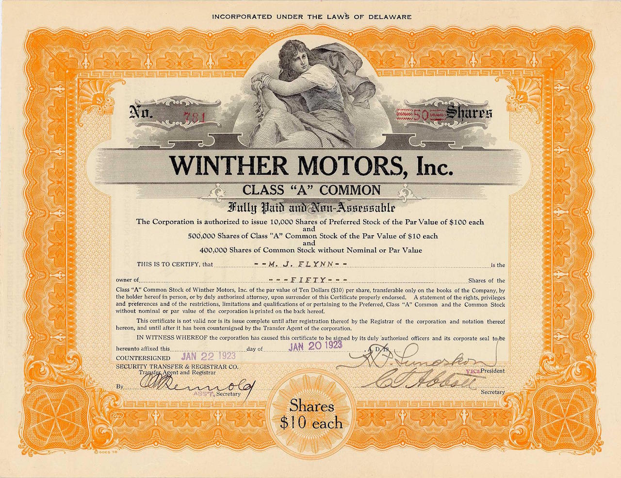 La società, fondata nel 1918, una consociata della Winther Truck Co., costruì un’auto molto bella con una macchina Hershell Spillman a Kenosho, Wisconsin, dal 1920 al 1923 con la Winther Six Tourer.