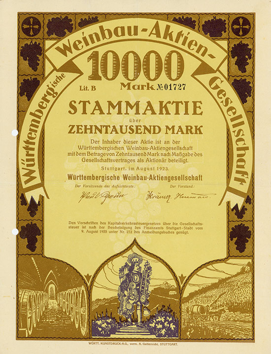 La società è stata fondata dal Württembergische Landes-Weingärtner-Genossenschaft il 21 luglio 1923. La Genossenschaft ha contribuito alla nuova società con tutti gli stock di vino e botti. Lo scopo dell’azienda era la coltivazione della viticoltura nel Württemberg, nonché l’acquisto e la vendita di vino di qualità del Württemberg. Fu liquidato nel 1926.