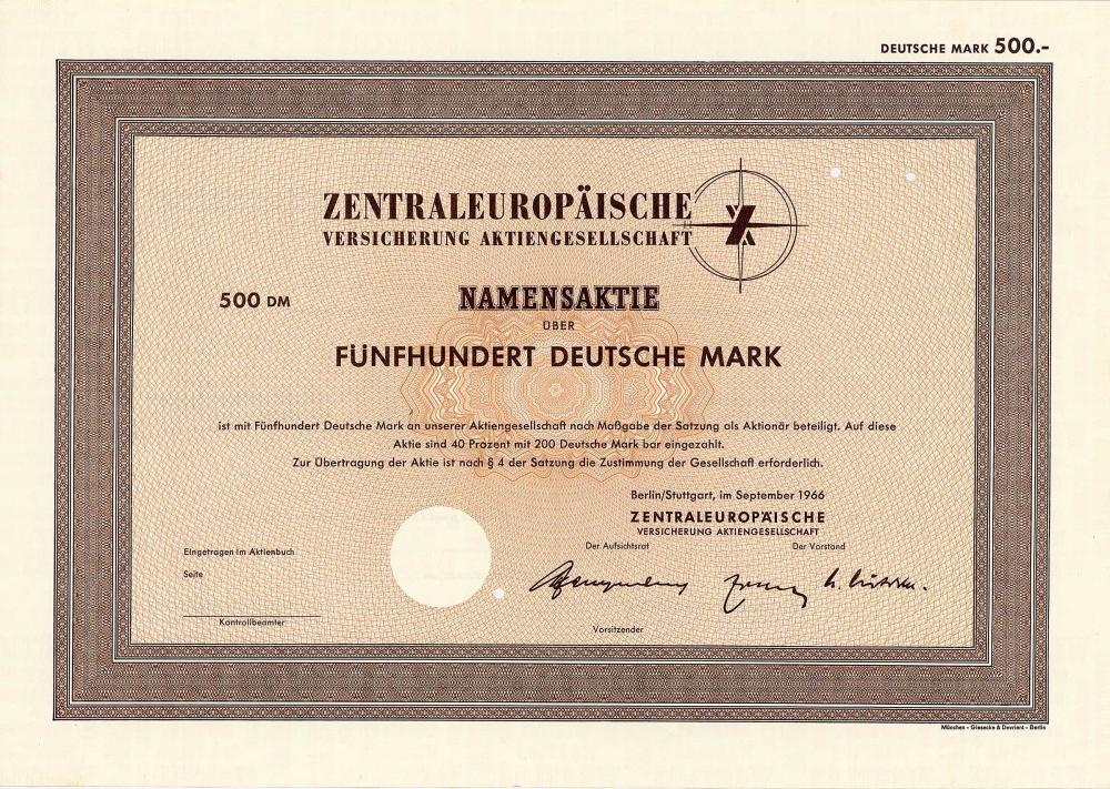 Fondata nel 1924 come Zentropa Central European Insurance Bank Ltd, dal 1929 Central European Insurance Bank Ltd, dal 1937 Central European Insurance Ltd. Nel 1950 Berlino autorizza la sicurezza e il trasferimento della sede principale a Stoccarda, dove dal 1967 vi era una seconda sede centrale e dal 1986 la sede principale, allo stesso tempo la società fu ribattezzata Sparkassen-Versicherung Allgemeine Versicherung AG.