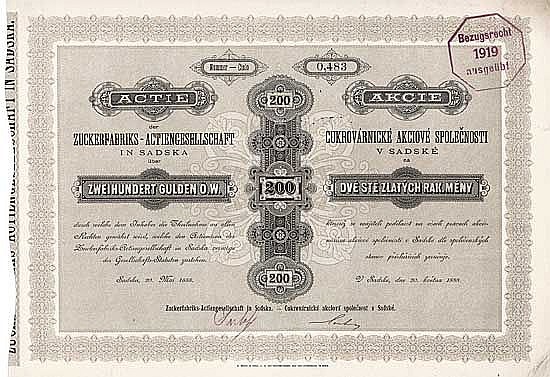 Il fondatore era Anglobank. Fabbrica di zucchero grezzo a 40 km a est di Praga.